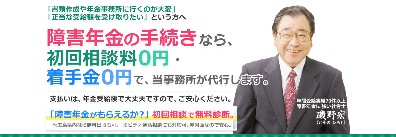 障害年金専門の社会保険労務士、磯野宏(いその ひろし)と申します。