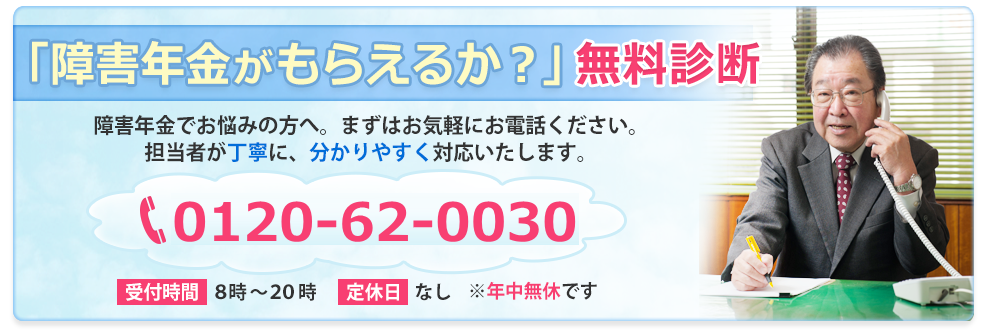 無料相談で、状況をお聞かせいただき、「障害年金を受給できるか?」を診断いたします。